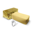 Our Giant Gold Bar Jewelry Wax Melts are sized at an average of 2 pounds, measuring 6 inches in length, 4 inches in width, and 4 inches in height. Each wax melt is intricately designed to resemble a gold bar, and the added bonus of a piece of jewelry inside makes this an exciting and unique experience for anyone.