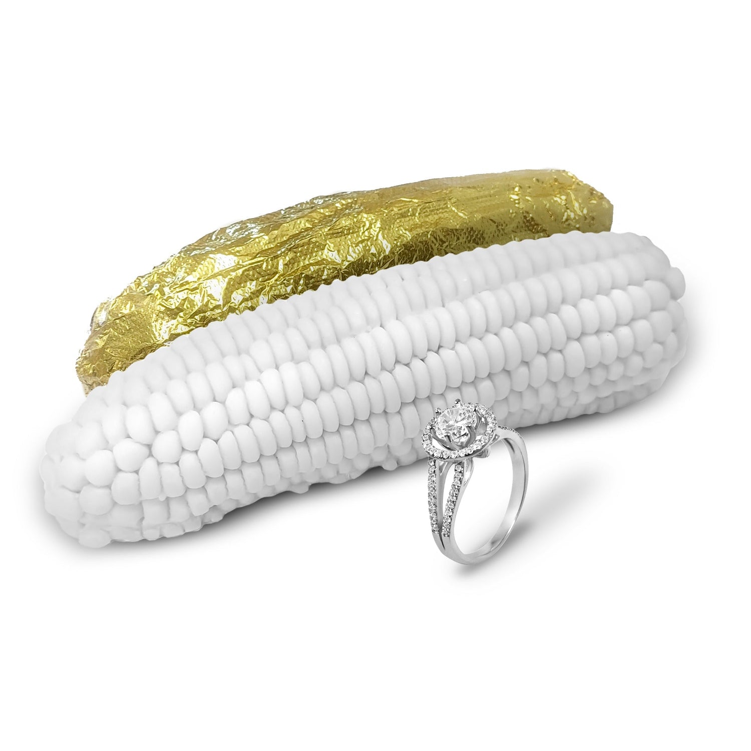 Each Giant Corn Jewelry Wax Melt is meticulously handcrafted with attention to detail. These corn-shaped wonders not only emanate enticing aromas but also hold a precious jewelry surprise inside. Valued from $15 and up to an astonishing $7500, the jewelry enclosed within is an expression of elegance and luxury. Whether you're treated to a dazzling ring, a stunning necklace, a chic bracelet, or a pair of exquisite earrings, you'll undoubtedly cherish the beauty that awaits.