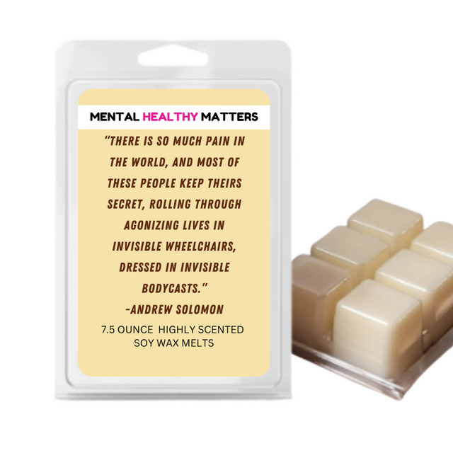THERE IS SO MUCH PAIN IN THE WORLD, AND MOST OF THESE PEOPLE KEEP THEIRS SECRET, ROALLING THROUGH AGONIZING LIVES IN INVISIBLE WHEELCHAIRS, DRESSED IN INVISIBLE BODYCASTS. | MENTAL HEALTH WAX MELTS